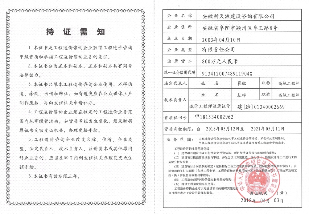 工程造價咨詢企業(yè)甲級